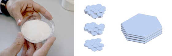 NANOTEC researcher Dr. Chutiparn Lertvachirapaiboon explained that this innovation originated from his PhD dissertation investigating optical properties of nacre – a pearly inner layer of mussel shells. The PhD study led to the development of a process to prepare bio-calcium carbonate from mussel shell without altering the compound structure. The extracted calcium carbonate is in an aragonite form – hexagonal crystals with 5-10 micron in size and 200-500 nm in thickness – with similar chemical properties to calcium carbonate obtained from limestone.