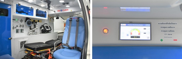Negative pressure ambulance Rexcuer was designed by NSTDA Design & Engineering Consulting Service Center (DECC) and RX by combining expertise of each party. DECC’s strength lies in cutting-edge technology and engineering, whereas RX has in-depth understanding in pharma and medical equipment market in Thailand with more than 50-year experience in the industry as a leading distributor of pharmaceutical products, medical equipment and supplies.