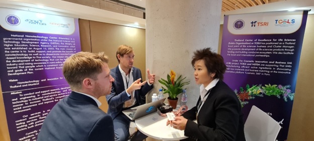 NSTDA Vice President Dr. Uracha Ruktanonchai revealed three Thai companies – David Enterprise and Development, Idea2Expert, and Thai-China Flavours and Fragrances Industry – featuring in Thailand Pavilion. These three companies participated in the Cosmetic Innovation and Business Link program, organized under the partnership of TCELS, NANOTEC-NSTDA, the Thai Cosmetic Cluster, Mahidol University and Naresuan University. The Cosmetic Innovation and Business Link is an acceleration program, supporting selected enterprises with outstanding natural products innovation to bring their innovation to market through the process of product development, quality assessment and certification, as well as developing competency and entrepreneurial skills in areas such as product registration, business plan formulation, and business negotiation.