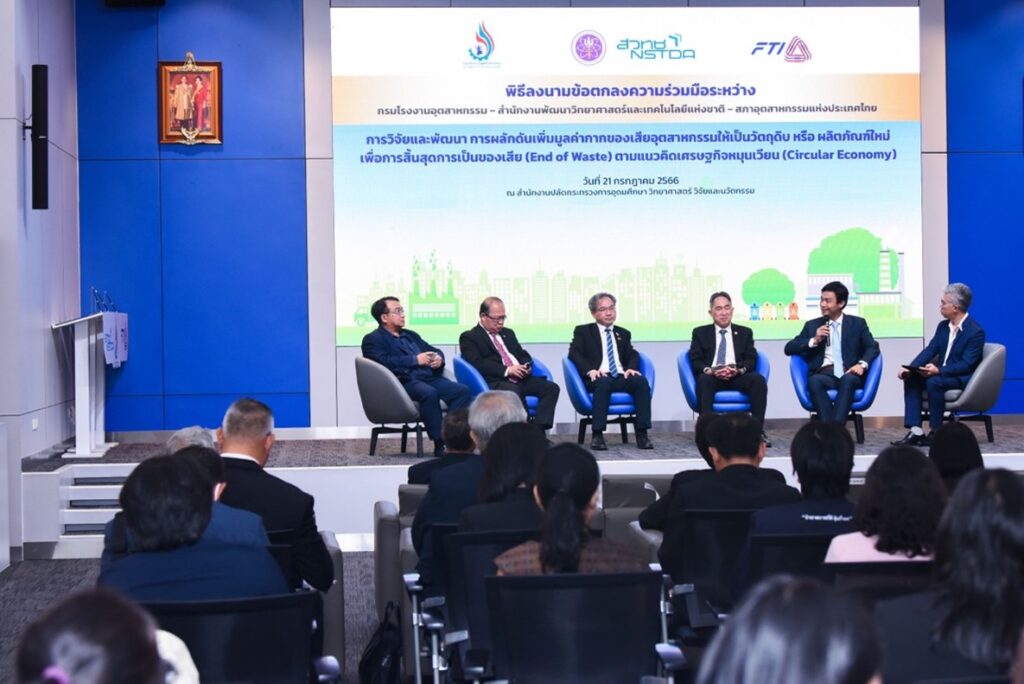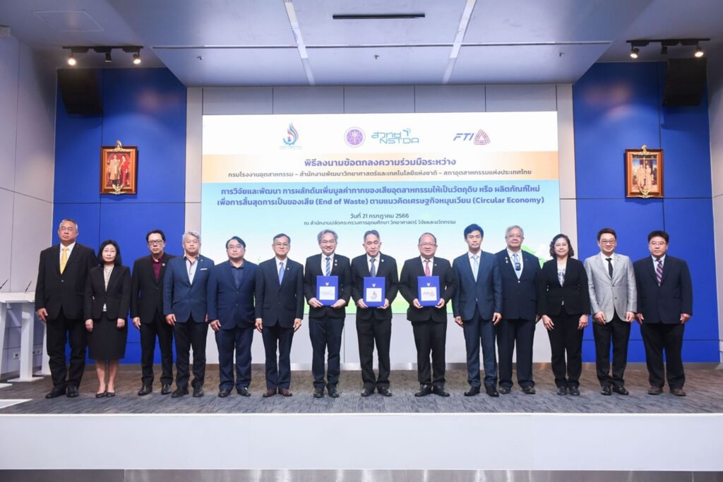 On July 21, 2023, NSTDA, the Department of Industrial Works (DIW), and the Federation of Thai Industries (FTI) signed a memorandum of understanding (MOU) to promote the end-of-waste concept. The main objective of this collaboration is to convert industrial waste into raw materials or new products while ensuring compliance to safety regulations.