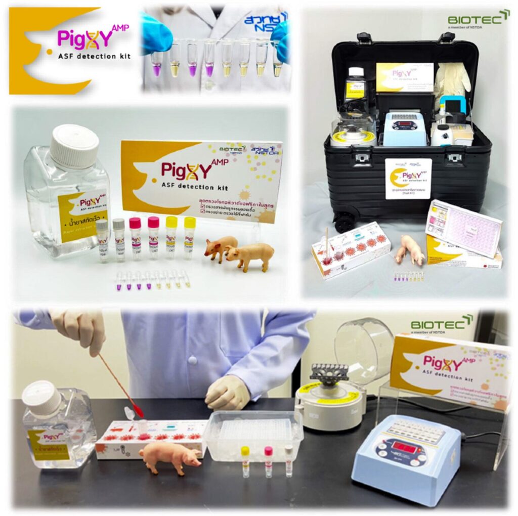 In response to the ASF outbreak in Asia in 2018, BIOTEC-NSTDA initiated the development of a diagnostic test for ASF as a preparedness measure. PigXY-AMP was developed as a one-step colorimetric LAMP kit for ASF detection. It comes with a rapid DNA extraction reagent for extracting DNA from pig blood samples.