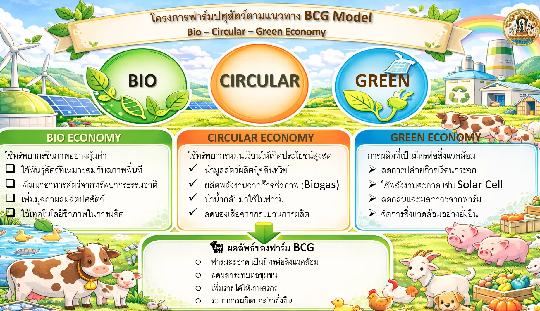 รัฐบาลไทยได้กำหนดให้ BCG Model เป็นวาระแห่งชาติ โดยมีเป้าหมายในการขับเคลื่อนเศรษฐกิจไทยให้เติบโตอย่างมีคุณภาพและยั่งยืน พร้อมกับสร้างภูมิคุ้มกันต่อวิกฤตต่าง ๆ ในอนาคต