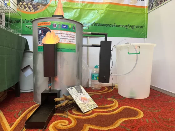 ดังที่กล่าวมาข้างต้น นอกเหนือจากการจัดงาน Appropriate Technology Matching Day เพื่อเปิดโอกาสให้มีการเชื่อมโยงเทคโนโลยีที่เหมาะสมและนวัตกรรมพร้อมใช้กับกลุ่มคนจนฐานราก เกษตรกรรายย่อย กลุ่มอาชีพ ผู้ประกอบการในพื้นที่ภาคเหนือแล้ว ภายในงานยังมี Show Case ตัวอย่างความสําเร็จของการขับเคลื่อน Appropriate Technology สร้างการเปลี่ยนแปลงต่อชุมชนสังคม โดยหนึ่งในโชว์เคสที่เราขอหยิบยกมากล่าวถึง คือ โครงการ “ถ่ายทอดเทคโนโลยีการผลิตน้ำส้มควันไม้และถ่านด้วยเตาเผาถ่านน้ำส้มควันไม้มลพิษต่ำเพื่อยกระดับคุณภาพชีวิตครัวเรือนเกษตรกรปลูกลําไยในจังหวัดเชียงราย” โดย ผศ.ดร.จักรพันธ์ ชัยทัศน์ อาจารย์ประจำวิทยาลัยเชียงราย