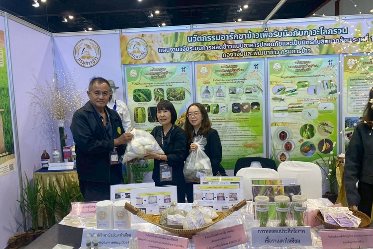 โดยได้จัดแสดงผลงานวิจัยที่ใช้ประโยชน์เกี่ยวกับงานทางด้านอารักขาข้าว ในหัวข้อ “นวัตกรรมอารักขาข้าวเพื่อรับมือกับภาวะโลกรวน“ ซึ่งประกอบด้วยการป้องกันกำจัดศัตรูข้าวด้วยสารเคมีที่มีประสิทธิภาพและปลอดภัย การป้องกันกำจัดศัตรูข้าวด้วยชีวภัณฑ์สายพันธุ์จากกรมการข้าว