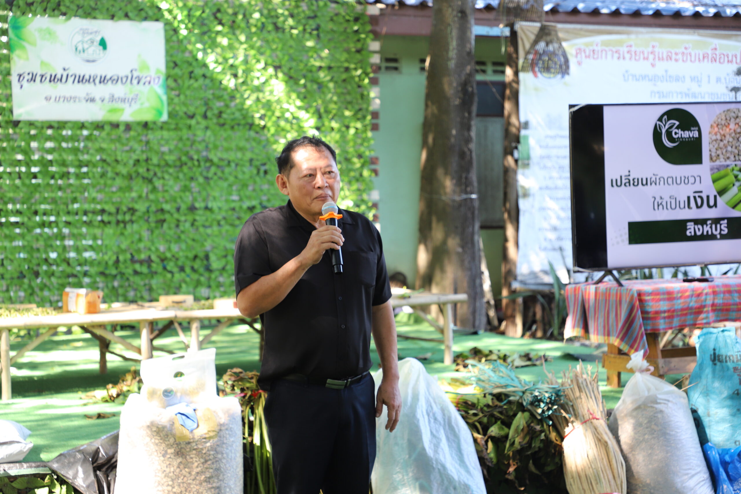 ในการอบรมแรก ใช้รูปแบบการฝึกอบรม สาธิตและปฏิบัติจริง เพื่อให้ผู้เข้าร่วมได้เรียนรู้การน้อมนำหลักปรัชญาเศรษฐกิจพอเพียงมาปรับใช้ในชีวีตประจำวัน/ โทษพิษภัยแลประโยชน์ของผักตบชวาแบบครบวงจร/วิธีการเก็บผักตบชวา/ การคัดแยกและการทำความสะอาดผักตบชวา/ การทำปุ๋ยหมักจากรากผักตบชวา การทำบับเบิลจากก้านผักตบชวา การผ่าก้านผักตบชวาเพื่อทำเส้น การตากแห้งผักตบชวาโดยวิธีธรรมชาติ และตู้อบพลังงานแสงอาทิตย์