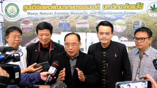 อธิการมหาวิทยาลัยแม่โจ้ กล่าวว่า ศูนย์วิจัยและพัฒนาเกษตรธรรมชาติ มหาวิทยาลัยแม่โจ้ ได้ดำเนินงานด้านการจัดการขยะอินทรีย์มาตั้งแต่ปี พ.ศ 2542 จนถึงปัจจุบัน โดยมุ่งเน้นการวิจัย พัฒนา และต่อยอดองค์ความรู้ให้เกิดนวัตกรรมที่สามารถนำไปใช้ได้จริงในภาคเกษตรกรรมและระดับครัวเรือน สร้างประโยชน์ทั้งในด้านมิติด้านเศรษฐกิจ สังคม และสิ่งแวดล้อม ภายใต้แนวคิดเศรษฐกิจ BCG ซึ่งให้ความสำคัญกับการใช้ทรัพยากรอย่างคุ้มค่า การหมุนเวียนทรัพยากร และการเพิ่มมูลค่าจากฐานทรัพยากรชีวภาพ ควบคู่กับการถ่ายทอดเทคโนโลยีสู่ชุมชนอย่างต่อเนื่อง