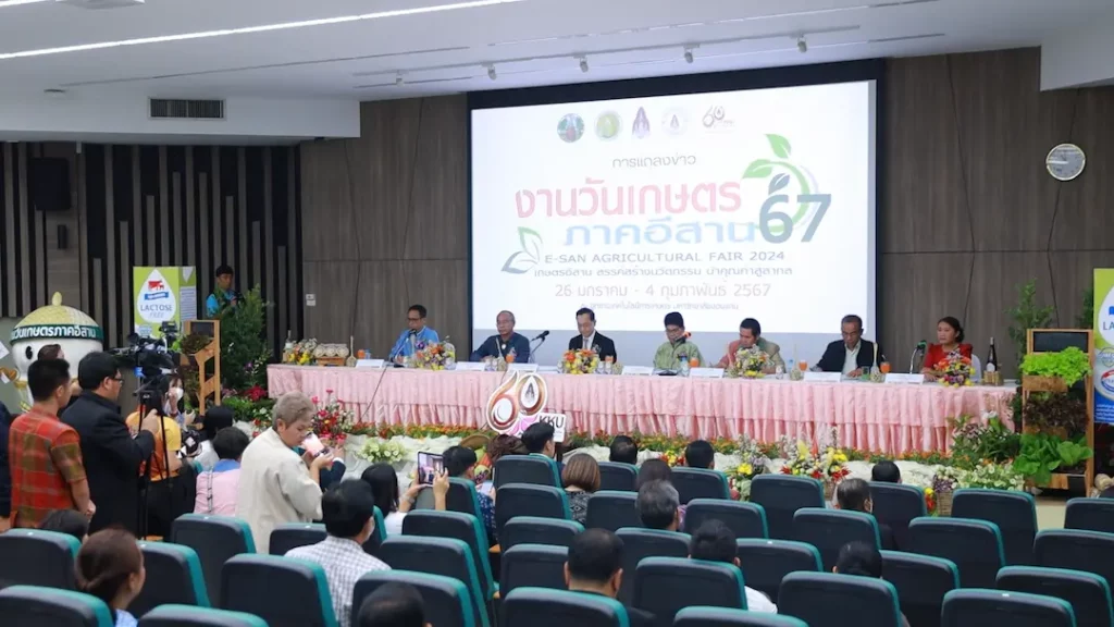 วันนี้ (10 ม.ค. 67) ที่ คณะเกษตรศาสตร์ มหาวิทยาลัยขอนแก่น รองศาสตราจารย์ นายแพทย์ ชาญชัย พานทองวิริยะกุล อธิการบดีมหาวิทยาลัยขอนแก่น เปิดการแถลงข่าว การจัดงานวันเกษตรภาคอีสาน ประจำปี 2567 กำหนดจัดขึ้น ระหว่างวันที่ 26 มกราคม – วันที่ 4 กุมภาพันธ์ 2567 รวมระยะเวลา 10 วัน ณ อุทยานเทคโนโลยีการเกษตร มหาวิทยาลัยขอนแก่น จัดโดยคณะเกษตรศาสตร์ มหาวิทยาลัยขอนแก่น ภายใต้แนวคิด “เกษตรอีสาน สรรค์สร้างนวัตกรรม นำคุณค่าสู่สากล”