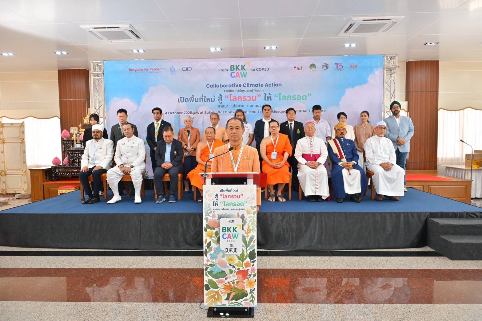 นอกจากนี้ ภายในงานยังได้รับเกียรติจากผู้นำศาสนาทั้ง 5 ศาสนา ได้แก่ ศาสนาพุทธ ศาสนาอิสลาม ศาสนาคริสต์ ศาสนาพราหมณ์–ฮินดู และศาสนาซิกข์ ร่วมประกาศเจตนารมณ์ “พลังศาสนา วัฒนธรรม นำสู้โลกรวน ให้โลกรอด” แสดงวิสัยทัศน์ผสานหลักคำสอนศาสนากับการแก้ปัญหาสิ่งแวดล้อม เพื่อสร้างความร่วมมือระหว่างศาสนาและสังคมไทยในการก้าวผ่านวิกฤตครั้งนี้ พร้อมทั้งเวทีเสวนาร่วม ระหว่างนักวิชาการด้านสิ่งแวดล้อม ผู้นำนโยบาย และเครือข่ายเยาวชน ภายใต้แนวคิด “ศรัทธา–นโยบาย–การลงมือทำ” พร้อมจัดนิทรรศการและนำเสนอนวัตกรรมสิ่งแวดล้อมโดยคนรุ่นใหม่ เพื่อสะท้อนบทบาทของเยาวชนในการเป็น “ผู้นำการเปลี่ยนแปลง”